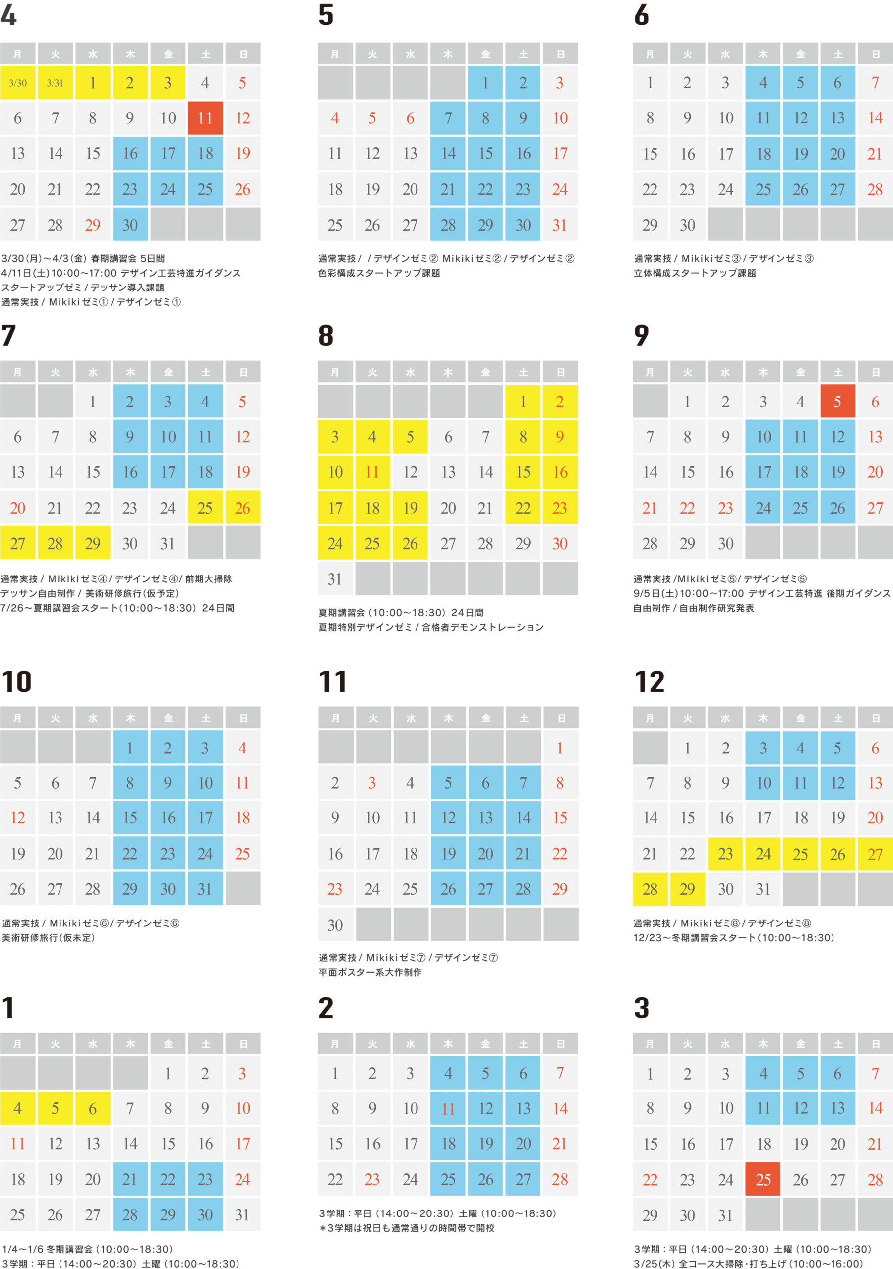 デザイン工芸総合 カレンダー