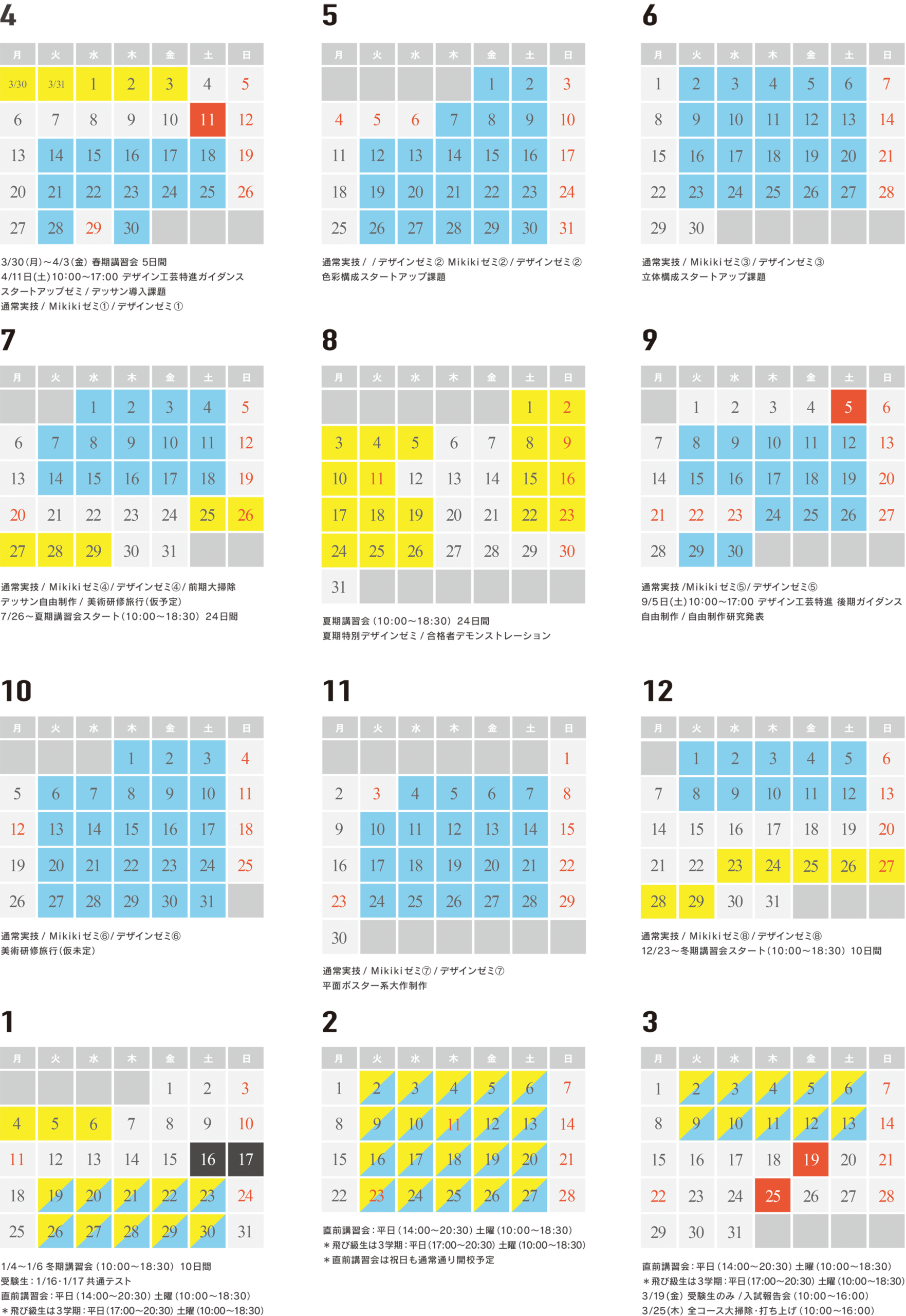デザイン工芸特進 カレンダー